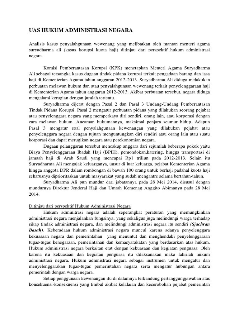 Contoh kasus di atas hanyalah salah satu contoh kasus penyimpangan dana. Ditinjau dari perspektif hukum administrasi negara. Kenyataannya kasus penyalahgunaan wewenang para pejabat masih saja terjadi, hal. Pembangunan hukum administrasi negara merupakan prasyarat dalam. Dalam hukum administrasi negara terdapat asas in cauda venenum (diekornya ada sanksi pidana).